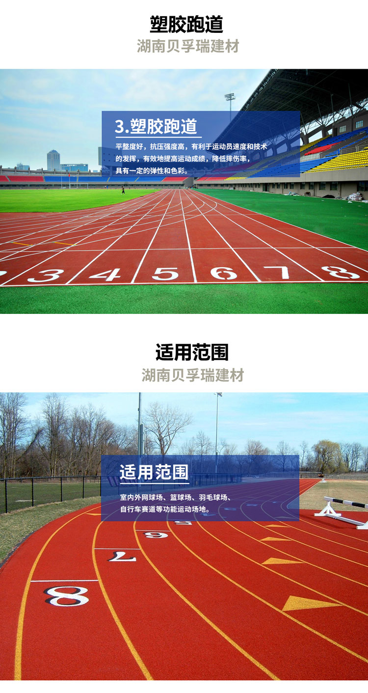 3、超強耐磨:面層選用高強度硅樹脂顆粒材料,獨特的雙層結(jié)構(gòu)。比普通產(chǎn)品更加耐磨,有的使用壽命達到8年以上。
